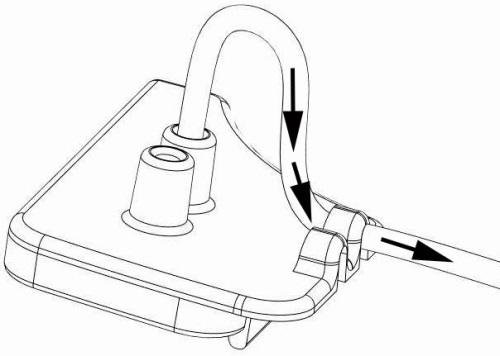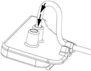 2. Pull about 2” (5cm) of the optical cable through the grabber hole and insert the end of the cable into the other hole as shown below. Push cable end down into the hole until it comes to a stop.
