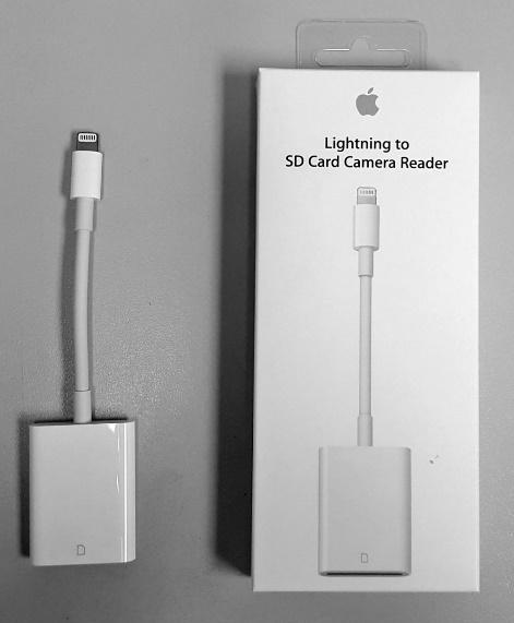 2. Insert the SD card into the Lightning card reader and connect the card reader to your iPhone or iPad.