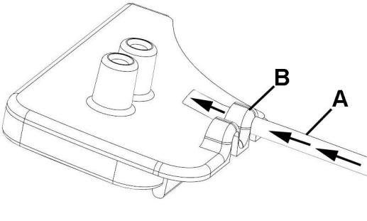 1. Insert the non-coiled end of the optical cable (A) through one of the grabber holes of the Flash Link adapter (B).